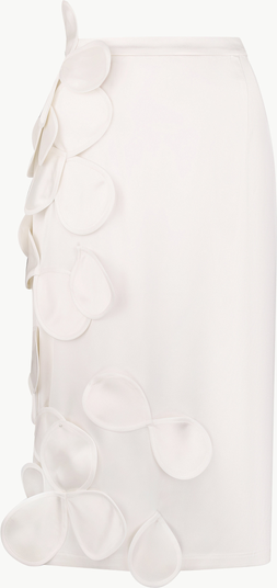 Below-knee bridal skirt featuring decorative floral appliqus (handcrafted decor).