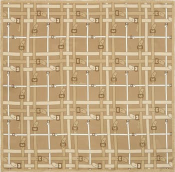 A scarf made in Italy from silk twill. Printed with an archival design, the belt from our signature trench is reimagined as the Burberry Check. ||Square|Hand-rolled edges|Printed Burberry lettering
