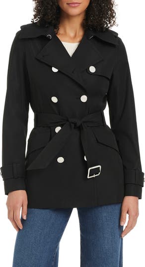 A sleek trench coat with a slightly abbreviated length keeps it simple and classic to make it your outerwear choice for work and weekend looks.