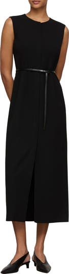 The minimalist, quiet-luxury label brings its tailoring expertise to this classic midi sheath dress with the clean, elongating lines of its slim silhouette. A slim leather belt adds enhanced definition to the seamed waist, and the signature Finesse Crepe offers refined drape and a lightweight, four-season hand feel.