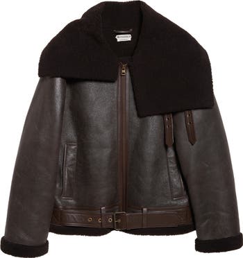 Belted Lambskin & Genuine Shearling Aviator Jacket
