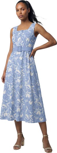 A breathable linen-blend midi designed with soft shaping, smocked comfort, and effortless warm-weather polish.