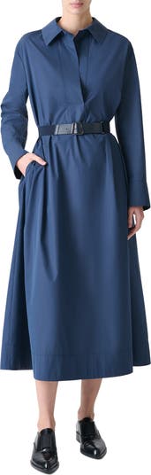 Belted Long Sleeve Cotton & Silk Midi Shirtdress