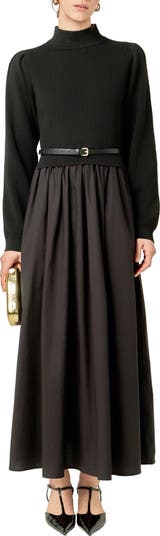 Keep your look effortlessly sophisticated with this A-line dress featuring a knit top and woven skirt pulled together with a coordinating belt.