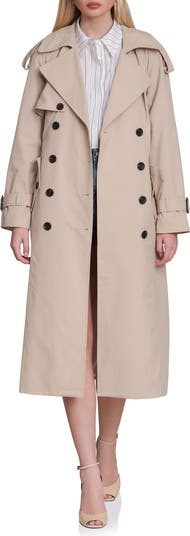 For the days you want your outerwear to do the talking, this longline double-breasted trench delivers with wide notched lapels and a commanding presence. Rectangular buckles wrapped in faux leather finish it off like a final signature.