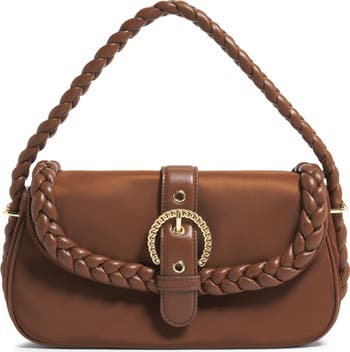 Glinting hardware and braided faux leather highlight the durable nylon exterior of a '90s-inspired shoulder bag perfect for storing your everyday essentials.