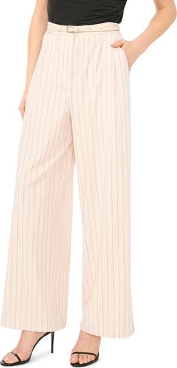 Belted Pleated High Waist Wide Leg Pants