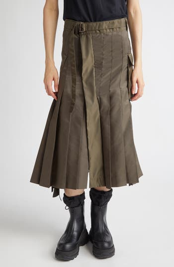 This belted maxi skirt exhibits Chitose Abe's innovative hybridization techniques by fusing utilitarian influences with school-uniform charm through structural pleats.
