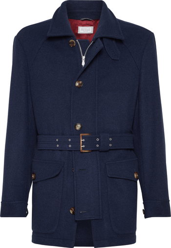 - Double closure with zip and buttonsLapel collar with detachable insertPatch hand pockets with flap and buttonAdjustable button cuffsHalf-linedTwo interior pockets with button and pen holderAdjustable and detachable belt