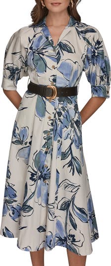Belted Stretch Cotton Shirtdress