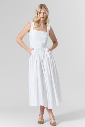 Belted Taffeta Embroidered Midi Dress