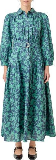 Sweet nostalgia defines this belted midi dress marked by a captivating print and finished with puffed long sleeves.