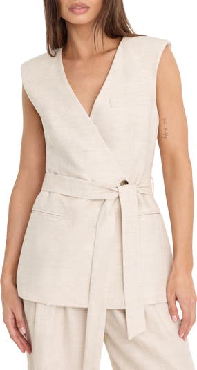 Vests are having a moment and a sash-tied option enriched with summery linen is a winning way to take on the trend.