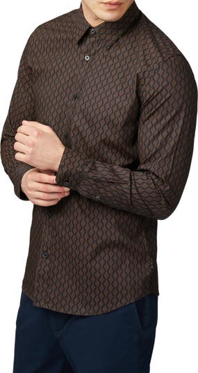 Linear Geo Print Organic Cotton Button-Up Shirt