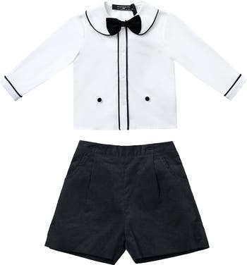 A refined yet playful outfit designed for little ones with big style. Perfect for weddings, birthdays, or any dress-up moment, this set balances crisp tailoring with all-day comfort. Shirt with piping, bow tie, and double-button detail. Tailored shorts with side pockets for a smart finish.