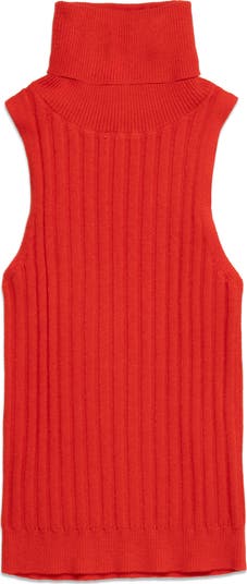 Add polish and warm comfort to day and evening looks with this sleeveless sweater topped with a tall turtleneck that's looking forward to cooler weather.