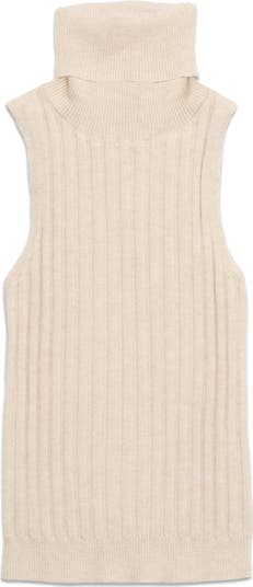 Add polish and warm comfort to day and evening looks with this sleeveless sweater topped with a tall turtleneck that's looking forward to cooler weather.