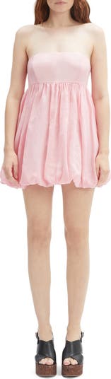 A bubble skirt and pink hue bring cotton-candy vibes to this strapless ramie minidress cut in a charming babydoll silhouette.