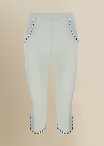 Cropped pants with a fitted silhouette, crafted from soft, stretch fabric. Finished with shell button details. Made in NYC.