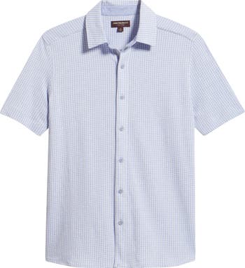 Cut from a soft, drapey cotton blend patterned with versatile gingham checks, this short-sleeve shirt brings a bit of polish to your laid-back weekend plans.