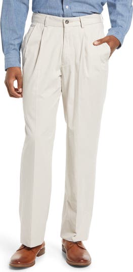 Lightweight washed cotton poplin elevates versatile pleated khakis in a traditional, full-tailored cut.