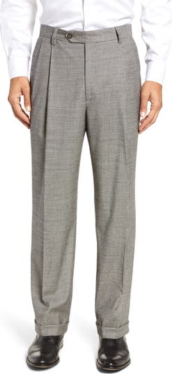 Stretch-infused, houndstooth-textured wool defines handsome trousers shaped in a smart pleated cut.