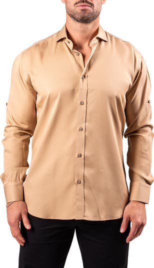Made in a fit that's a perfect balance between regular and trim, this all-cotton shirt is designed with button-tabs at the cuffs that let you choose the length of sleeves you want.