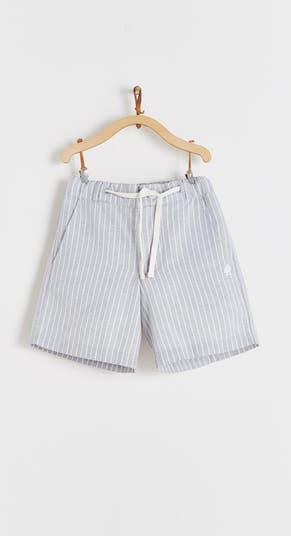 Striped linen bermuda, with internal elasticated waist, to adjust on the waist. Visible lace that gives a casual look.