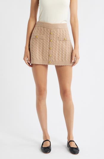 This cashmere-and wool-miniskirt takes cozy to the next level with its intricate cable stitching, luxe texture and playful button detailing. It’s sweater weather, reimagined.