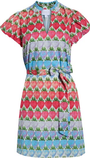 Airy cotton keeps you feeling breezy in this puff-sleeve minidress made with a curve-hugging tie belt.