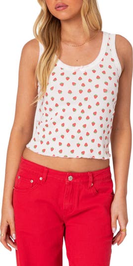 EDIKTED Berry Cool Print Tank Top, Main, color, White