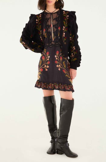 Fluttering frills add romance and volume to this woolly cardigan detailed with signature flowery stitching.