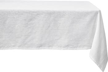 A berry scallop trim adds a signature flourish to a woven linen cloth perfect for adding a beautiful foundation to your tablescape.