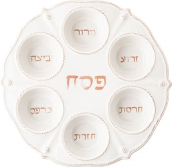 A fluted silhouette sprinkled with berries & threads merges traditional and modern design in this lovely ceramic Seder plate.