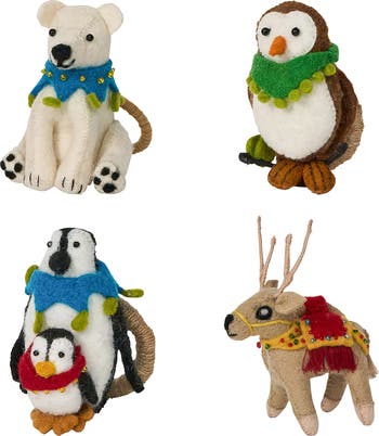 Crafted from colorful felt—perhaps by Santa's elves?—this merry menagerie adds a festive touch to your holiday table with the childlike wonder of the season.