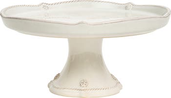 A small whitewash-glazed ceramic cake stand with an elegant pedestal is trimmed with Juliska's delicate berry and thread motif for an old-world French feel. Serves as a striking centerpiece crowned with your most triumphant petite confections.