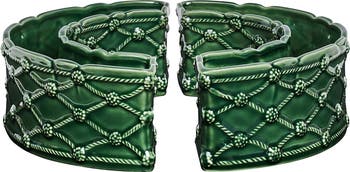 A vintaged stonewashed glaze highlights the brand's iconic berry-and-thread motifs decorating these intriguing ceramic vases inspired by the parterre gardens of Chateau du Villandry in France.