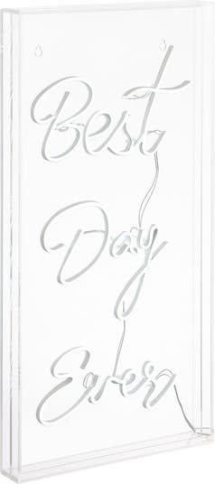 Best Day Ever 11.75" X 23.63" Contemporary Glam Acrylic Box USB Operated LED Neon Light, White