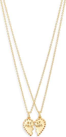 This gleaming heart charm necklace is handcrafted from 18-karat gold vermeil and is meant to be shared with your dearest friend.