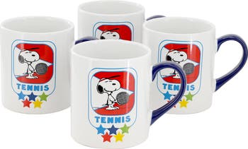 PEANUTS Best In Sports Tennis 4 Piece 19 Ounce Stoneware Mug Set, Alternate, color, White