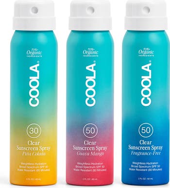 What it is: An array of COOLA's best-selling nonareosol spray sunscreens with a clear, nongreasy finish. The sprays are perfect for daily use and long, active days in the sun.