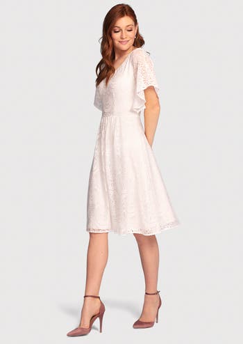 The Beth Dress epitomizes elegance with its lace design, offering a romantic option for bohemian brides. Skirt length from under bust to hem: Approx 64cm.