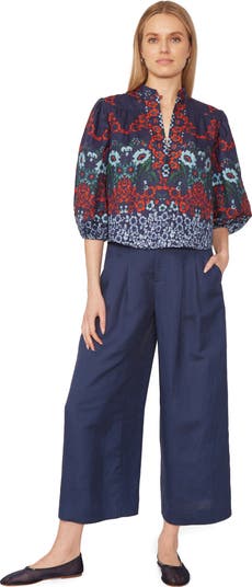 Floral print 3/4 sleeve blouse with placket in soft viscose fabric.