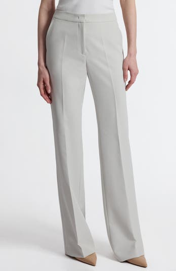 These flared trousers are crafted from soft stretch crepe, offering a smooth, polished finish with comfortable flexibility. Designed with a clean waistband and a subtle flare through the leg, they create a flattering, elongating silhouette that feels effortlessly modern. The medium rise and tailored structure make them easy to dress up or down for any occasion. Style them with a silk blouse and heels or a fitted blazer for a refined look that transitions seamlessly from desk to dinner.