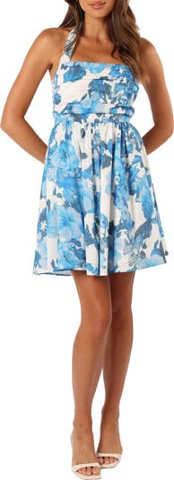 Vibrant blooms embolden this breezy minidress designed with a halter neck and a flowy pleated skirt.