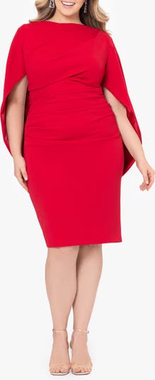 Elegant and eye-catching, this fiery frock is styled with shapely front gatherings and a dramatic back drape.