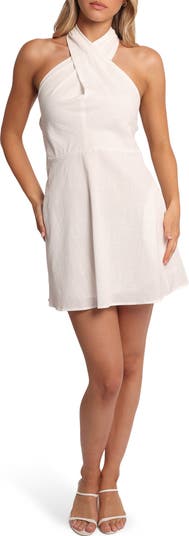 Enhance your summery dress collection with a breezy mini cut from cool cotton and designed to showcase your shoulders and back with a crossover halter neck. A pair of discreet pockets maintains the sleek silhouette.