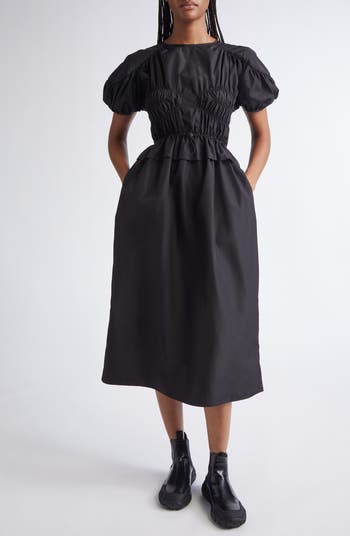 Betsy Ruched Puff Sleeve Drawcord Waist Recycled Faille Dress