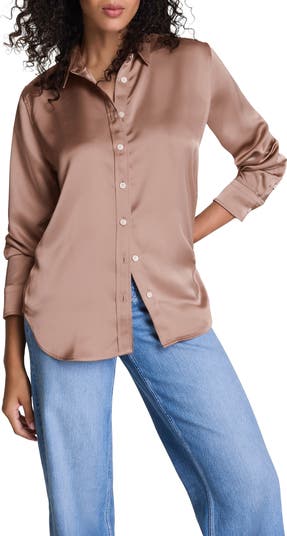 This lightweight shirt made from fluid satin is one you can easily dress up or down, depending on your mood.