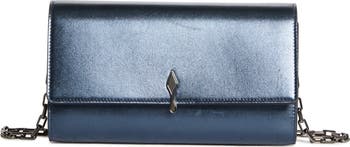 New metal hardware that evokes the silhouette of the label's iconic sole adds a sophisticated gleam to this minimalist wallet crafted from metallic leather. It's the perfect size to tuck inside a larger bag, carry as a clutch on a night out or you can attach the chain-link strap for an everyday option.
